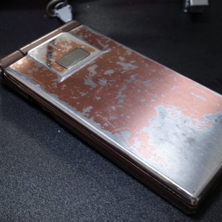 開通手続き後、十分程度で圏外になったP705iμ。もはや電話はできなくなったが、買ったときの様子と比較すると約17年の風格がある。これはこれで記念に残しておくかな。